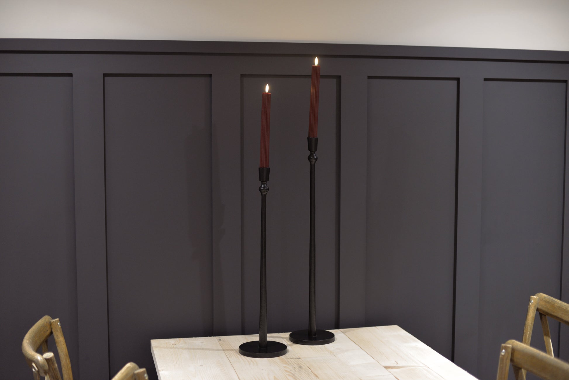 Flameless LED - Grooved Taper Candles - 25.5cm